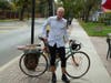 As luck would have it, along the way to Gibsonton he had met a cycling enthusiast. Klein texted him (he certainly couldn't talk to him with paper-thin walls). The man agreed to meet Klein and took him, and his bicycle, to his mansion where Klein proceeded to paint his portrait while getting to know him better. Fortunately, that part of the story had a happy ending.