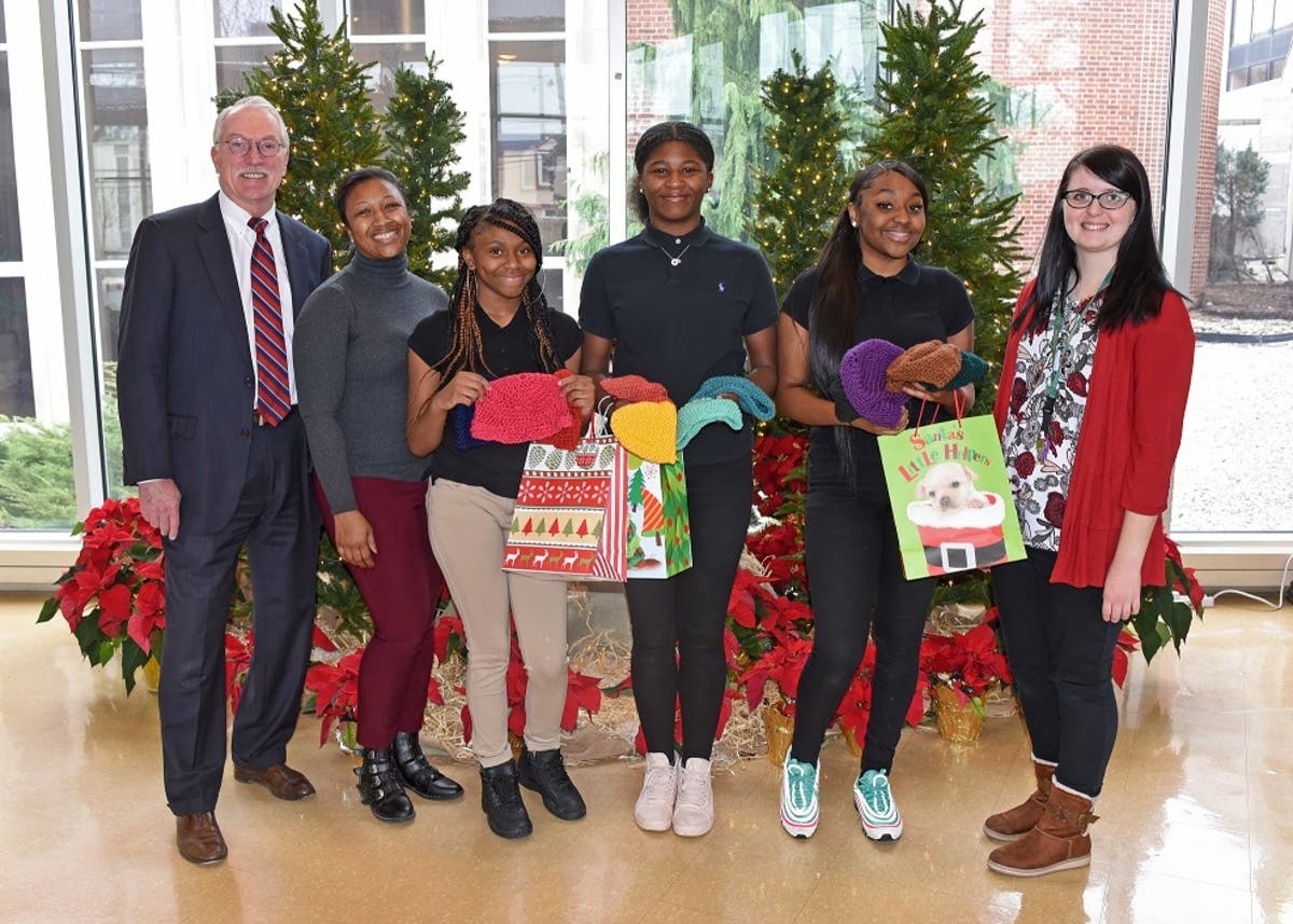 Students from Rubino Academy in Ewing, NJ, recently delivered 11 hats that they crocheted for the patients of St. Francis Medical Center.