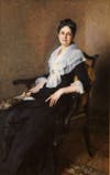 The portrait of Mrs. Marquand, in the words of Kusserow, is “very restrained and exceptional and effective.” She sits on an 18th-century Chippendale chair in an antique, dark dress with a fichu draped around her neck.