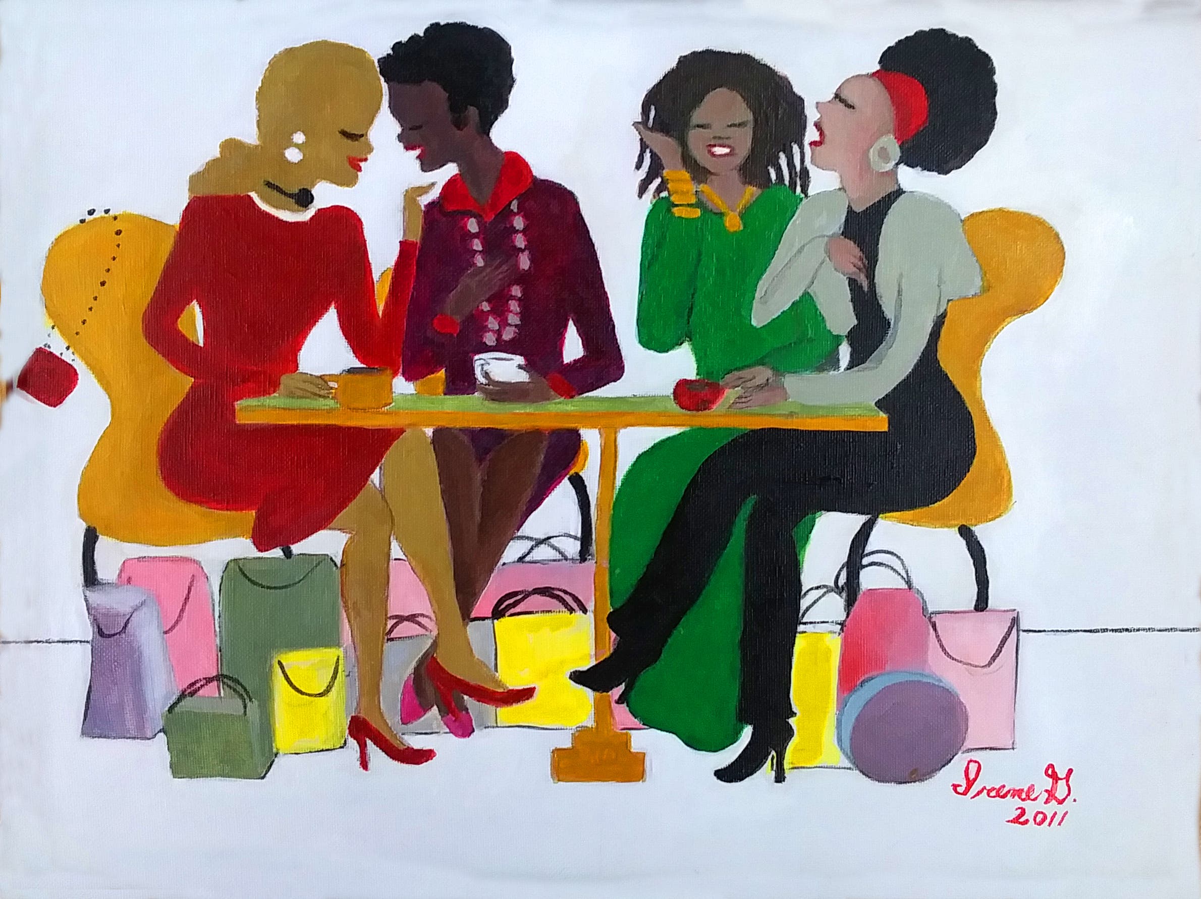 Granderson, a 91-year-old artist from the Lawrence Senior Center. She loved drawing since childhood and began exploring other mediums of artistic expression since relocating to New Jersey in 2004. Her painting “Sisters at Heart” is displayed at The Purple Cow Ice Cream, Main Street.