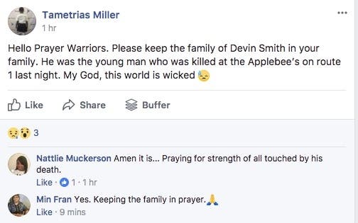LAWRENCEVILLE, NJ -- His girlfriend didn't know how to break it to their daughter, the fact that 23-year-old Devin Smith was dead. Briana Anderson was still trying to keep it together late Tuesday, hours after Smith was fatally shot in the head at an Applebee's in New Jersey.