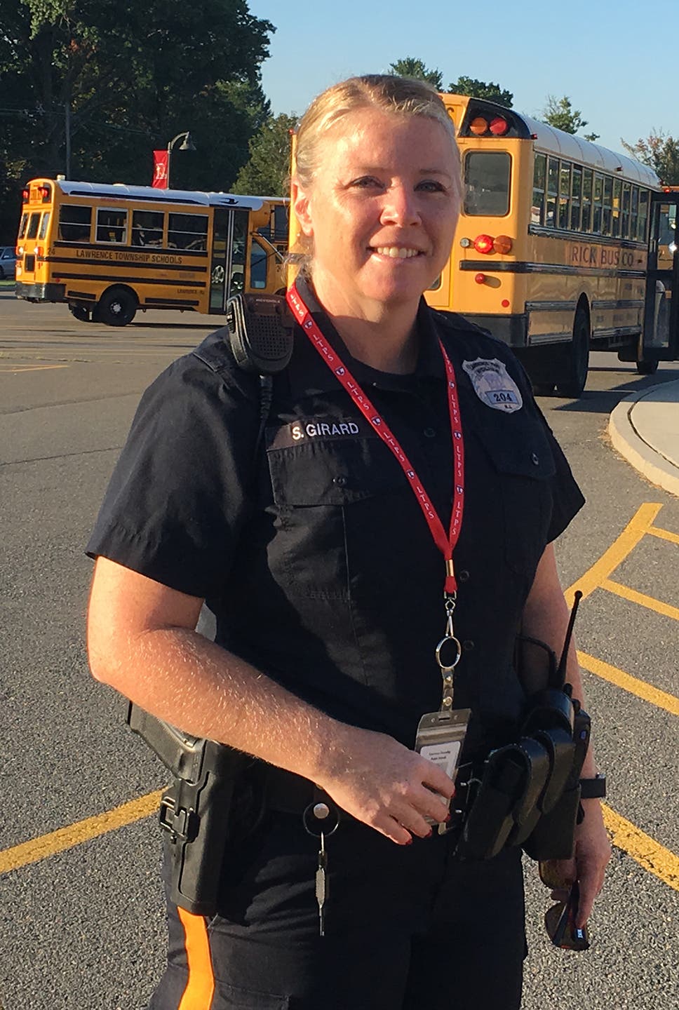 Suzanne Girard, an SRO, is in her 17th year as a Lawrence police officer and worked as a deputy court administrator for the Lawrence Municipal Court for five years prior. A few years ago, she served as an SRO at Lawrence Intermediate School and Lawrence Middle School. She is married to a Lawrence High School graduate, and they have three children ages 11, 8, and 6.