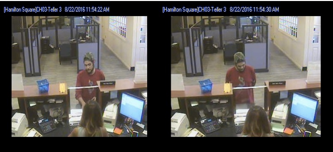 Trenton, NJ -- At around noon on Monday, Aug. 22, Hamilton Township police officers responded to a report of a bank robbery at the Sun Bank at 411 Route 33, Hamilton Township Police said.