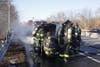 The blaze on the northbound side of the Trenton Freeway disrupted morning traffic.