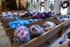 Pictured #1: Donations fill the pews of St. Francis Medical Center chapel.