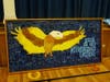 The finished product includes 152 tiles, arranged 18 wide by nine tall. It features a vivid golden eagle soaring over a deep blue background, with the words “Home of the Slackwood Eagles” prominently displayed.
