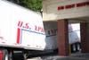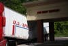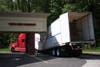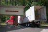 The impact caved-in the middle of the trailer – which was filled with boxes of merchandise – and also tore away part of the trailer’s roof, he said.