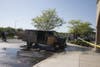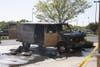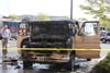 Flames destroyed a van parked in front of the Joe Canal’s liquor store at Mercer Mall in the 3300 block of Brunswick Pike (Business Route 1) Monday afternoon, May 9.