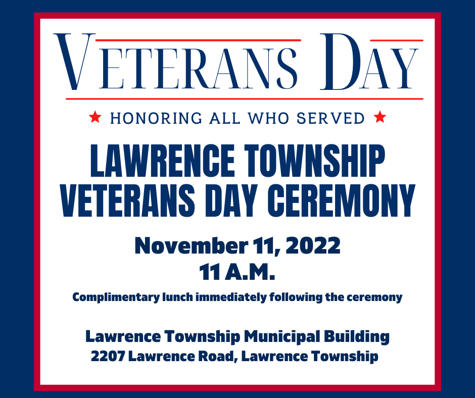 LAWRENCEVILLE, NJ – Lawrence Township will be hosting a Veterans Day Ceremony on Friday, at the Municipal Building.