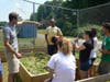 Hussey guides his students outside working the earth to create a fall vegetable
