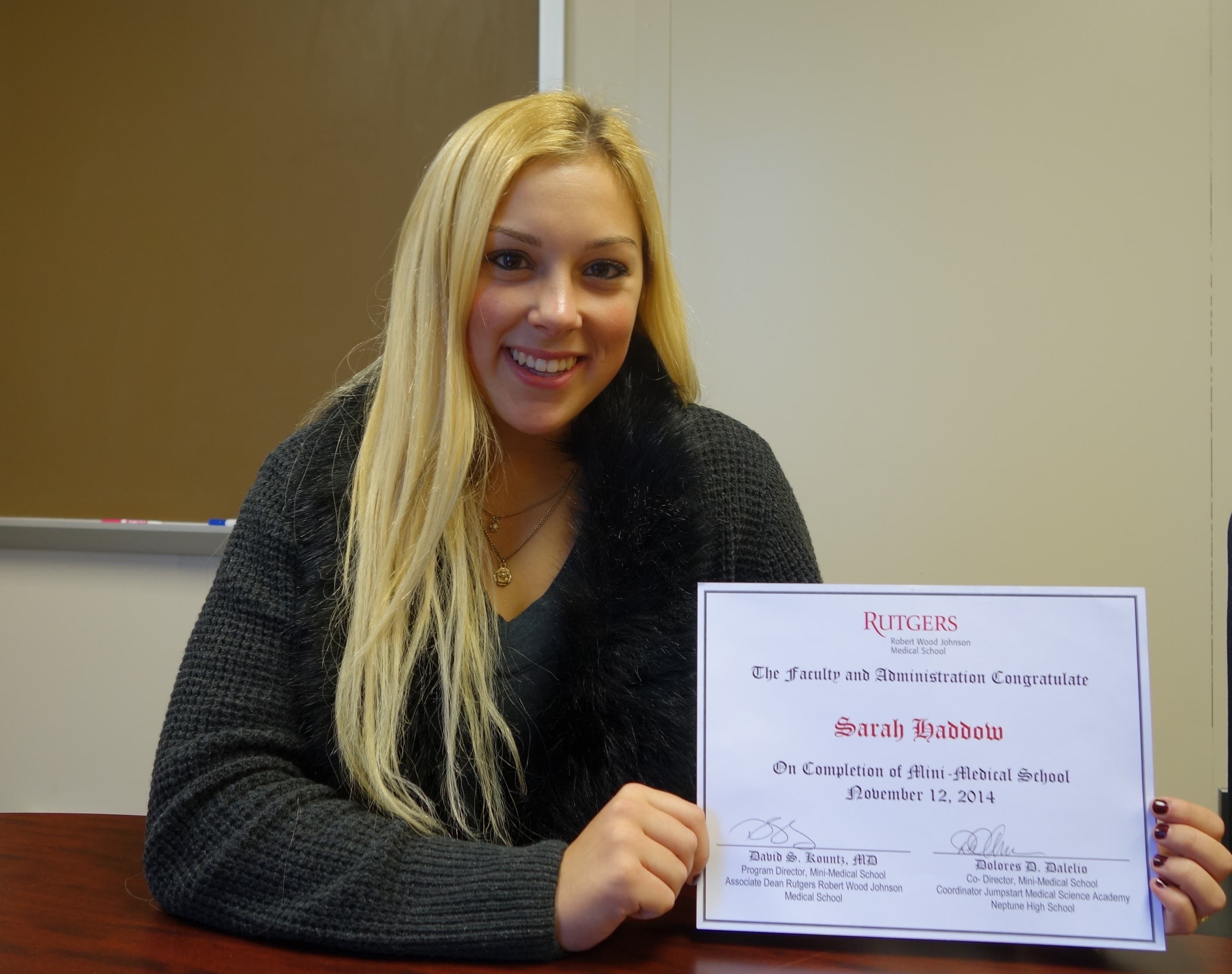 RBR Senior Sarah Haddow of Little Silver recently graduated from Rutgers Robert Wood Johnson Mini Medical School.