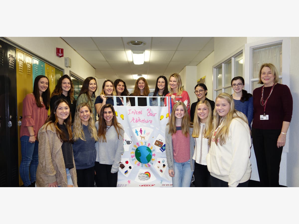 Twenty-six students from the Red Bank Regional (RBR) chapter of the Family Career Community Leaders of America (FCCLA) returned home victorious from the state Fall Leadership Conference held in Edison, New Jersey, on November 19. Over 30 schools were represented from around the state. Pictured above are some of the members of the RBR’s team with their teacher Sue Eads. They are pictured above left to right: Colleen Dougan, Jordan Wesp, Alaina DeRose, Natalie Drzewiecki, Amira Ibrahim, Elizabeth Norton, Sophio Pouso, Summer Smith, Stephanie Flores, Julianna Vockroth, Mrs. Eads; Left to Right Front Row: Abby Bynoe, Ava Nelson, Rebecca Goldzwieg, Lauren DeVitto, Maggie Cahill, Kiera McCarthy. The students earned two Gold Medals; one for the banner pictured above. A second was earned by Grace Laverne and Katelyn Sandin for their activities in preparing a child for a doctor’s visit. Two silver medals were earned in culinary categories by Lily Ferrone, Tesa Koetzner and Grechen Ogden. Lauren Mery and Eveyn Sullivan took a silver medal for their Go Green invention from recyclables while Summer Smith and Sophie Pouso also won a bronze in the same category. Abby Bynoe, Kiera McCarthy and Ava Nelson won a bronze medal for their Football Food Drive Community Service Project which they staged at the Hazlet football game. FCCLA members who participated but are not pictured are: Gianna Boriello, Abby Brockway, Julia Kirkpatrick, Georgia Landree, Claudia Medlolla, Chloe Rosen, Katelyn Sandin, Kanymah Tucker, Abby Wagner, and Brooke Walker.