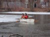 According to Fontoura, a witness was driving south on Brookside Drive around 4:45 p.m. Saturday and saw a man walking a large dog on a leash across the pond. When the man passed them, he looked back, but didn’t see the dog. The man in the car made a u-turn and could not locate the man on the pond either. He did, however, see someone on the shore, but that person was gone by the time the witness arrived.