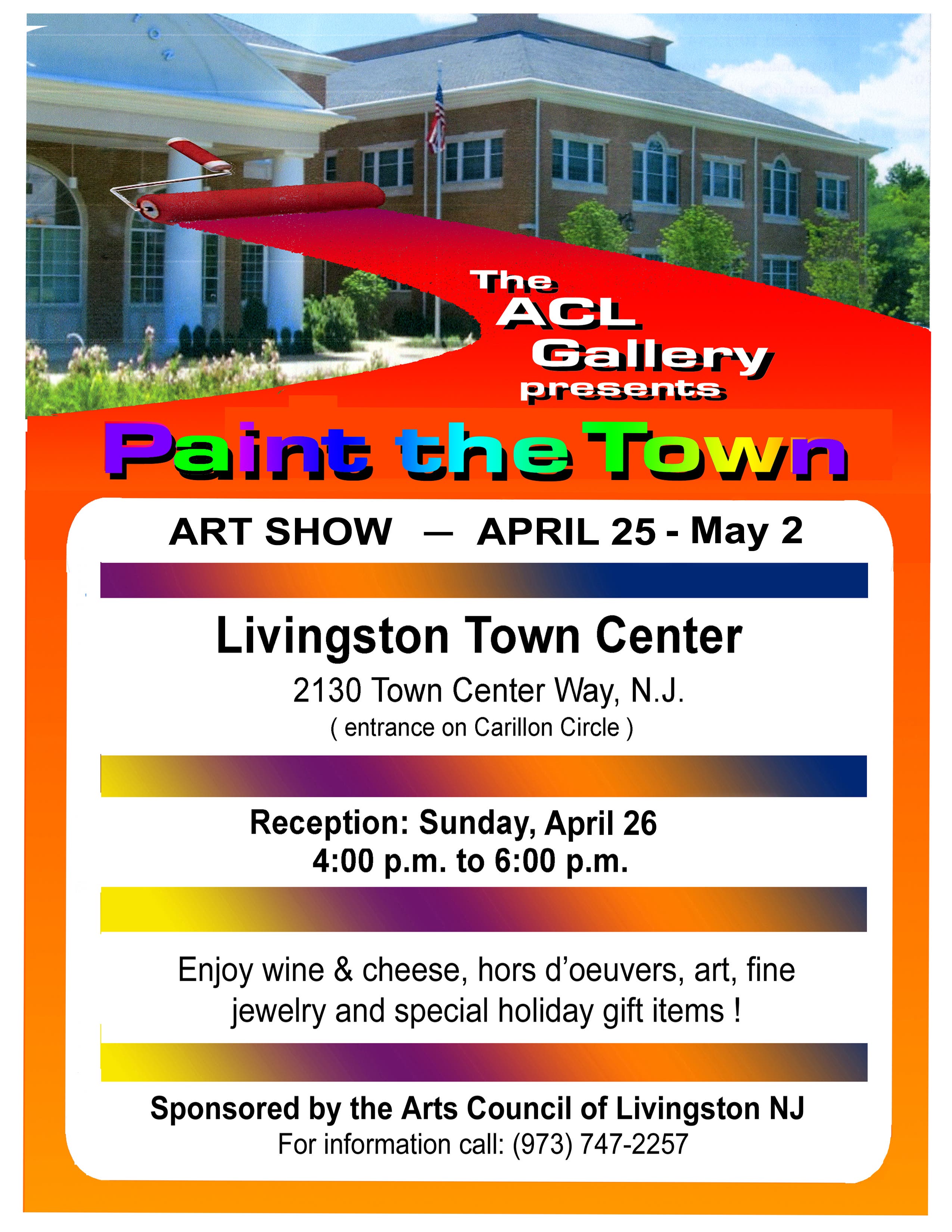 Aspiring student artists are invited to a novel event. The ACL (Arts Council of Livingston) Gallery is holding a Paint the Town event for students from grades 6 through 12. Participating student artists will be asked to transform a list of provided venues into works of art using 16X20 canvases supplied by the gallery for a nominal fee. They may use any media and work in their home. Supplies are limited to 50 canvases, so if interested, be sure to claim your canvas while supplies last!