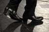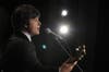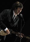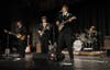 The details are correct -- moptop wigs, black suits, beatle boots, Paul's Hofner bass, the way John holds his guitar up high and Ringo's slanted head and goofy grin. The man behind the bass is the most convincing physically, as he somewhat resembles Paul and has McCartney's body language down pat.