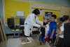 Harrison Third Grade teacher Lynn Raiolo dressed up as a physician and checked students for lice and made them hop on one leg for special medical exams.