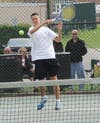 At third singles, the match was closer. After losing the first set 6-1, Columbia's Ethan Panzer battled back in the second set to make it competitive, but lost to Livingston's Eric Katcher in straight sets, dropping the second one 6-4.