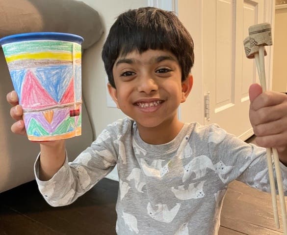 After receiving the craft kits, children were able to join a Zoom class, during which 28th South Mountain, BPSA scout leader and kindergarten teacher Jen Best taught them about the history of the djembe drum and how it is played, while also leading them in assembling the drum and playing their new instruments as a group.