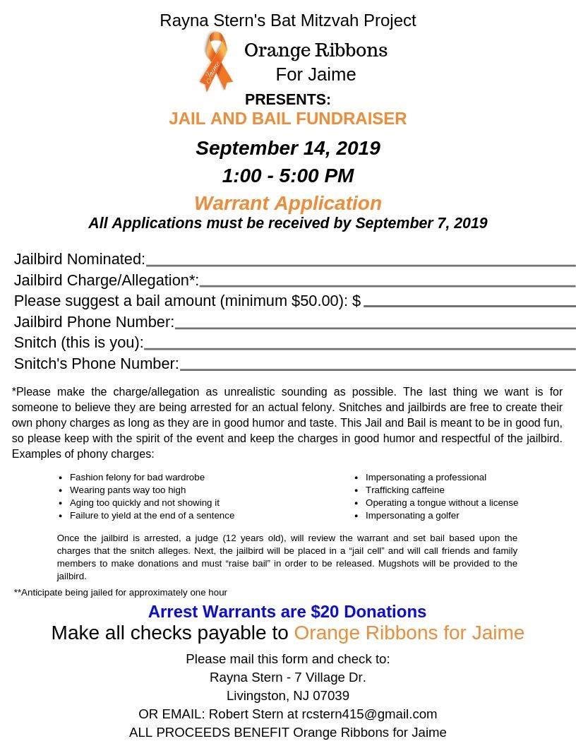 On Saturday, Sept. 14, Rayna Stern will spearhead an event she’s calling “Jail and Bail,” which will raise funds for Orange Ribbons for Jaime, a charity devoted to advancing “common sense gun safety.”