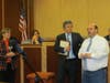 The Council held a swearing in ceremony for two new police officers, presented a check to the on behalf of the , and said good-bye to longtime Essex County Liaison Anthony Puglisi while welcoming his replacement, Eileen Fishman.