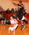 But Jett hit one of three three-pointers in the first half —with seven seconds on the clock— to cut into the Bulldogs' lead to 36-21 at halftime.