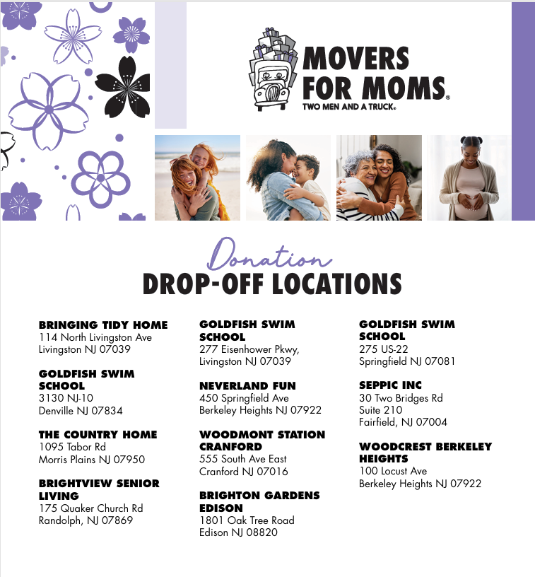 LIVINGSTON, NJ — A New Jersey moving company and a network of local partners are teaming up to hold a donation drive for “mothers in crisis” in advance of Mother’s Day.