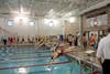 The two schools split their meet at the William E. Simon Natatorium.