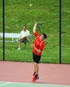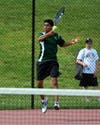 Livingston trailed at all five positions at one point in the second set, before turning things around at four spots. Thomas Caputo followed Dyapa with a three-set victory at first singles. Surprisingly, previously unbeaten second-singles player Brandon Goldstein lost to red-hot Andre Rivera, 6-4, 7-6 (9-7).