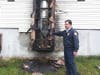 Austin Paris, a resident of Shrewsbury Drive, said he lit his livingroom fireplace for the first time this fall and was working on his computer when he heard a loud bang and saw a stranger standing outside his home telling him the house was on fire.