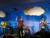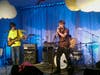 Underneath hanging props of clouds, a moon and a parrot and in front of a sky-blue curtain, Rhubarb Jones kicked out the jams at their Knights of Columbus show. Frontman Sugarman was the most animated, rapping, whooping and singing in a crisp alto that he sometimes ratcheted to a shrill soprano. He boogalooed, shot finger guns at friends and dropped a few colorful phrases on the mic.
