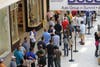 A large crowd began to form well before 10 a.m., which was when the contest began. By the time the event got underway, a line of hopeful sports fans stretched from the center of the mall all the way back to the entrance to the Sears department store.