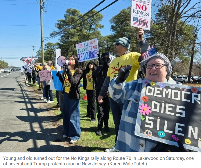 In Toms River, participants in the No Kings rally on Hooper Avenue in front of the Veterans Administration clinic said the crowd was the largest such local rally they have seen so far.