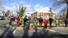 Groups of residents and schoolchildren waving flags spanned from Wood Avenue to St. Gertrude's Cemetery in Colonia.
