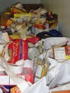 Boxes and cans fill the shelves of the food pantry’s main storage area and freezers and refrigerators line a far wall, filled with meats and dairy products. A storage room off to the side of the main area is filled with dry goods waiting to be stocked on the shelves.