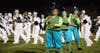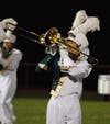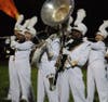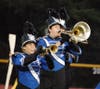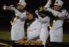 Ten high school marching bands show off their talents for their fans and judges as the annual event resumes in Manchester on Saturday.