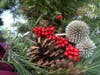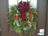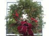 To the basic wreath we add ribbon, different greens for depth and texture, and berries, pine cones and branches for visual interest.