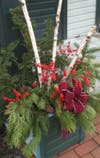 Adding your own greens and branches into a wreath is a snap. Just cut them to a size appropriate to the wreath you’re working with, and push the branches into the wreath so they’re going in the same direction as the existing branches. Spruce and white pine branches are everywhere now, but cedar, juniper and holly will add depth and interest to the design. Andromeda and rhododendron are also great additions to a wreath or planter – the flower heads of the Andromeda add a “fluffiness” and the leaves of the rhododendrons are “bold” against the finer needles of the other greens. You can also add deciduous tree branches - white Birch or the Winterberry Hollies (the ones with the bright red berries) - the same way.