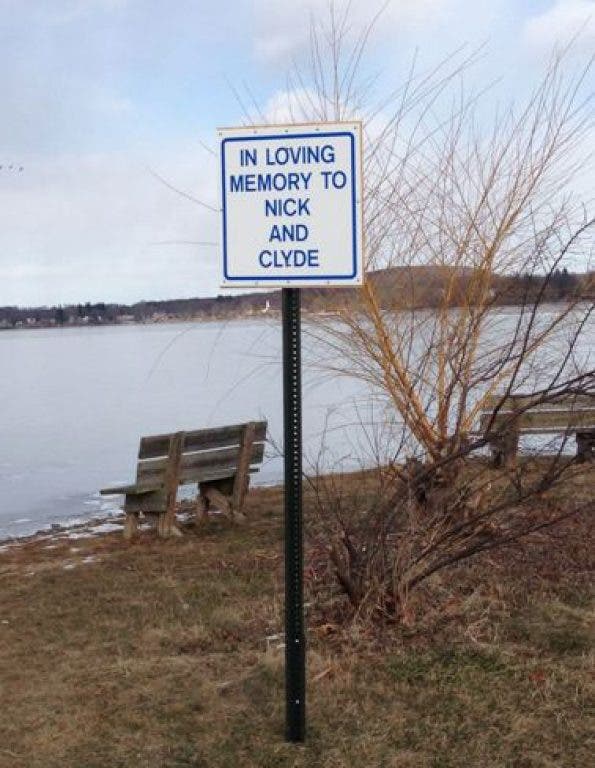 “In Loving Memory to Nick and Clyde” the sign reads in a photo Mayor Rob Greenbaum posted to his public Facebook page.
