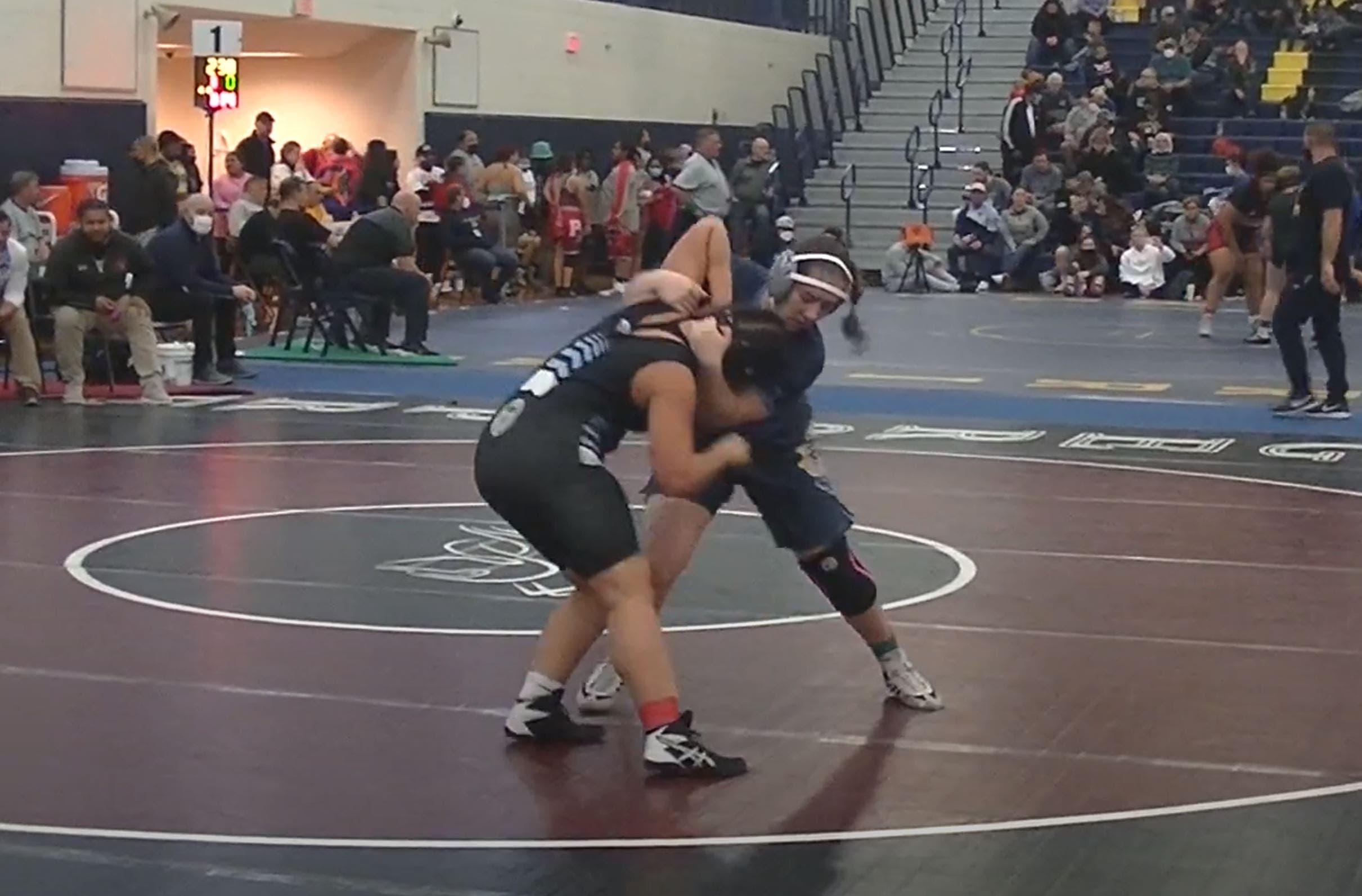 Campanaro (120 lbs., 28-7 record) majored hometown favorite Mason Gervasio 8-0 to advance to the finals, where he prevailed 4-2 over Seton Hall’s Carlo Vanvolkenburgh. Both opponents are highly ranked. Campanaro took District 12 silver two years ago as a freshman, and advanced to top-12 in states last season. This year he’s gunning for the podium.