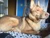 "He is wearing a blue and red collar with no name tag because he chewed it off. He's a nervous dog and will freeze if you go near him. He has green eyes. Huskey/german shepherd mix. He is Microchipped through avid," Millan said.