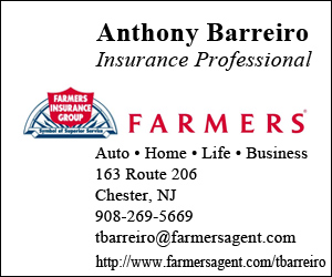 New Patch Partner, Insurance Professional, Anthony Barreiro has opened a new Farmers Insurance office at 163 Route 206 in Chester (near Shop Rite).  He can be reached at 908-269-5669.