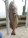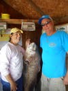 Using a gaff to bring it into the boat, the couple realized it was a black drum fish, part of the grouper family. They brought the catch over to Jingles Bait & Tackle, but the shop owner’s scale wasn’t big enough.