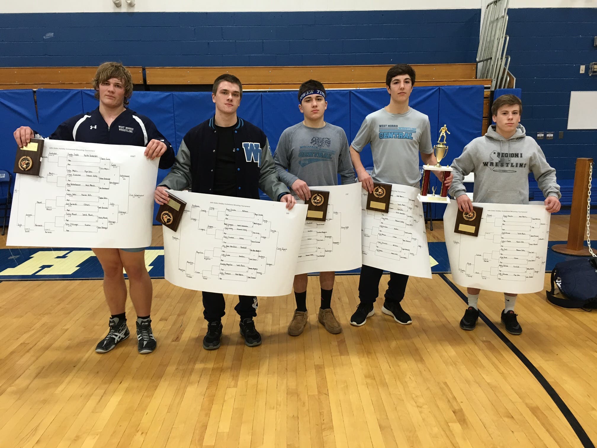 LONG VALLEY, N.J. - Five – count ‘em – five WMC wrestlers took home gold medals at Monday’s John Goles Holiday tournament at Warren Hills High School. Alex Kaltenhauser (HWT), Caleb Isemann (160), Marco Gaita (152), Kade Loughney (138) and Shane Metzler (120) were champions. Michael Caso (113) took bronze, and Christian Trimarchi (145) fourth.
