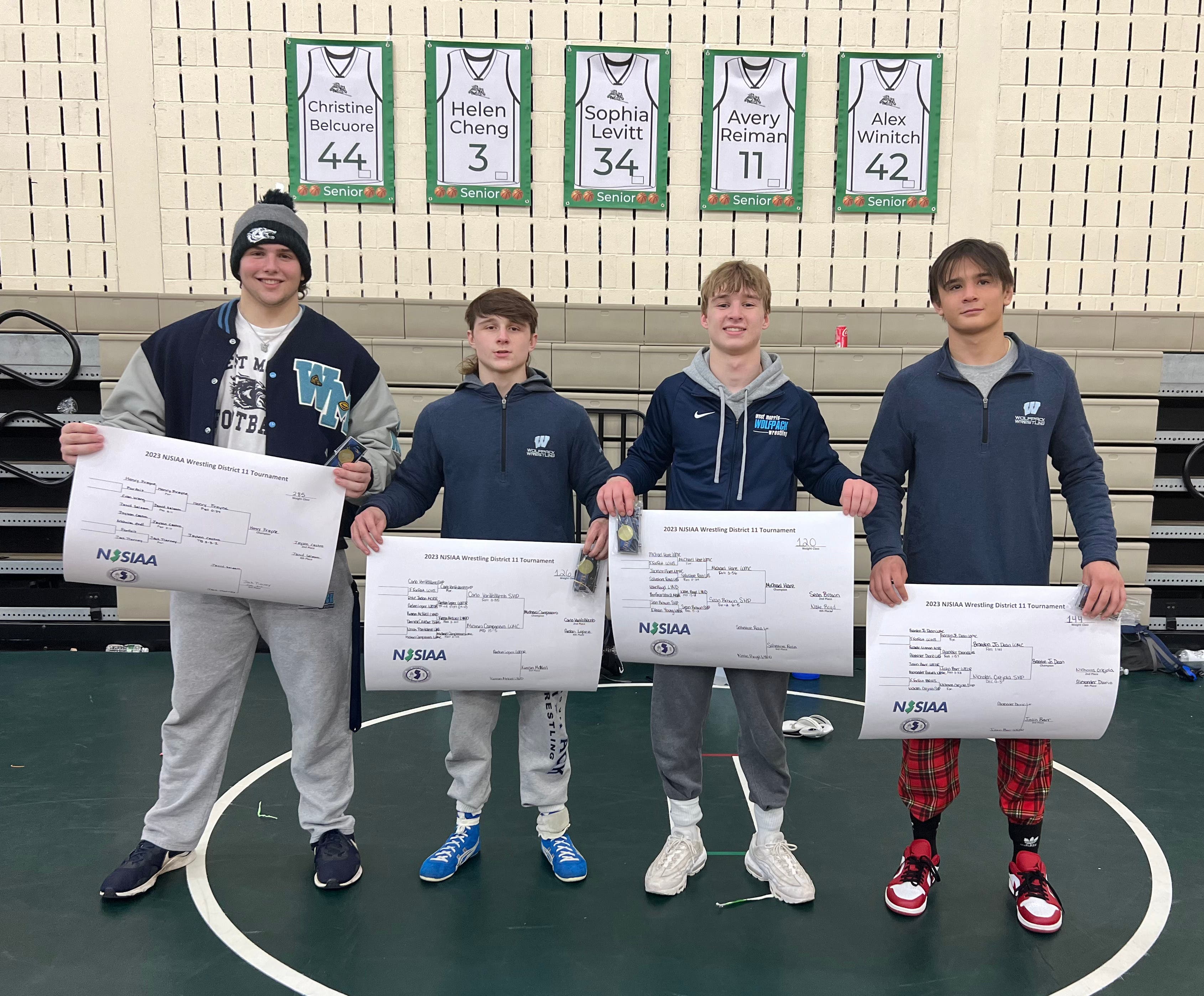 The four gold medalists advance to the NJSIAA Region 3 Championship along with freshmen Tommy Borgia and Jacob Fahmi, sophomore Mark Montuore and senior Dean Muttart who placed second, third, third and third respectively. The top four Region placers advance to the State Championship in Atlantic City, where they compete against the top placers from all eight regions.