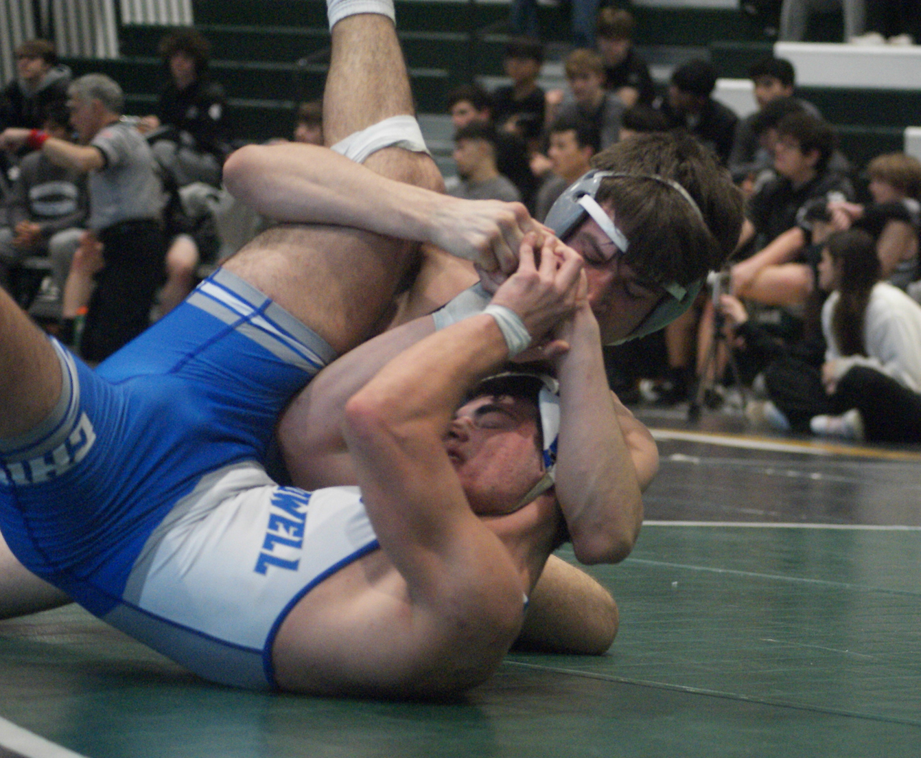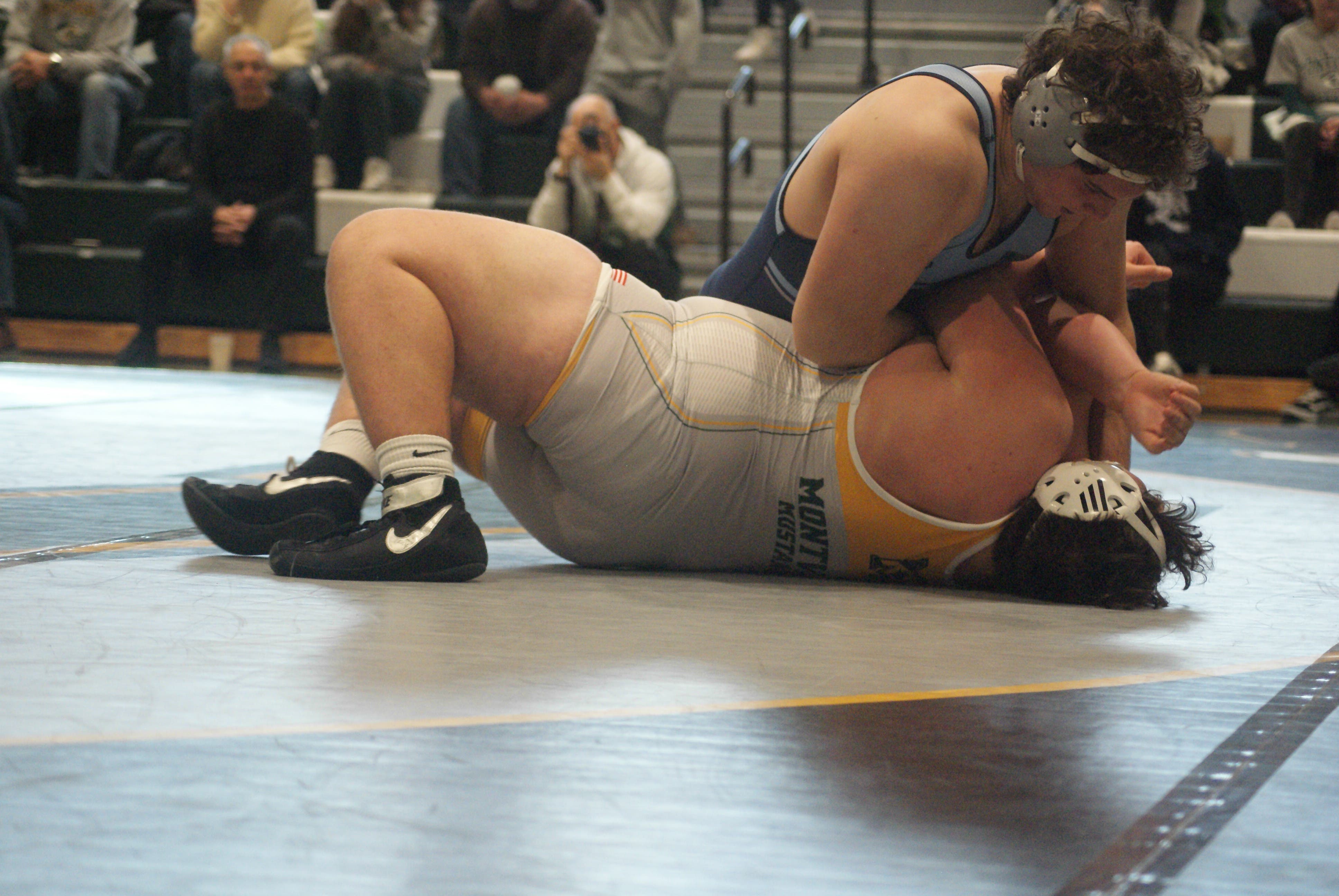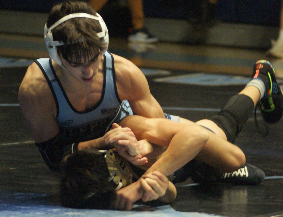 But few have gone the distance against WMC’s twin towers. Borgia, facing a winning-record senior, calmly delivered the pinfall early in the second. Then Frayne was fast, pinning in 35 seconds.