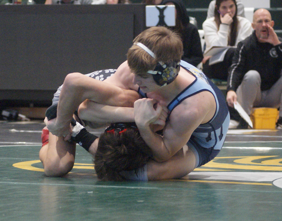 Dean (150, 20-2) finished the match with an exclamation point, pinning Roxbury’s second-highest-ranked wrestler, senior district medalist Weston Edelman (previously 14-2).