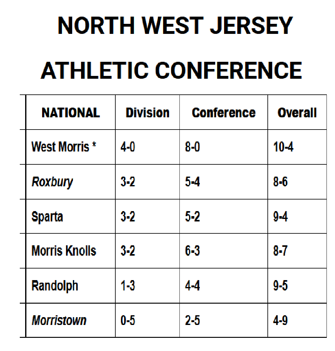 WMC visits rival Mt. Olive for a meet on Jan. 24, then for the Morris County Tournament Jan. 27-28. The Randolph match is rescheduled for Jan. 25. Mendham hosts the Pack Feb. 1. Friday Feb. 3 WMC hosts Eastern for Senior Night. Sectional quarterfinals and semifinals are Feb. 6, then finals are Feb. 8. Districts are Feb. 18