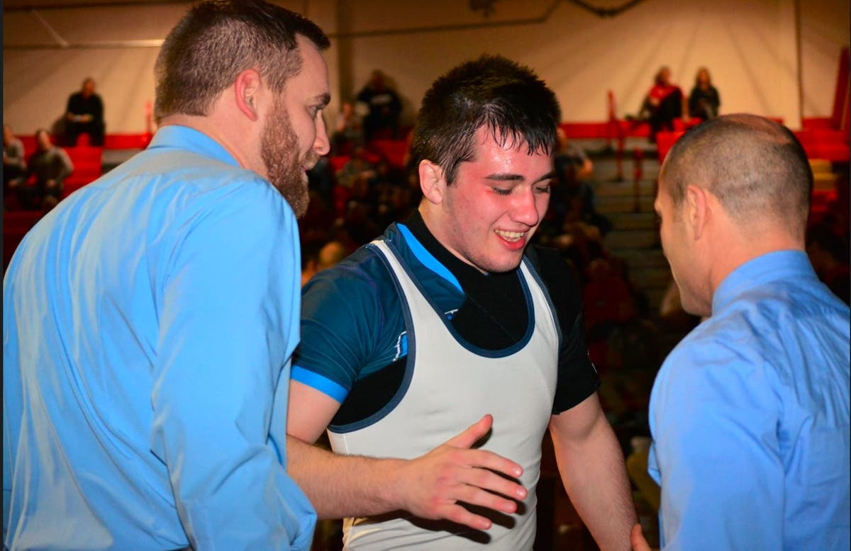 Referees reviewed the tiebreaker criteria in order. Criteria a, b, and c regard penalty points, and there were none for either team. Criterion d goes to the team having won the most matches – another tie, 7-7. It came down to criterion e – most falls or forfeits, which Mendham won on the strength of pins from Gage Armijo, Jack Bertha, and Dom DiGena, which fittingly raised funds for the cause. The Mendham crowd erupted with glee and stormed the mat when the referees made the long-delayed announcement of a 33-32 Mendham win.