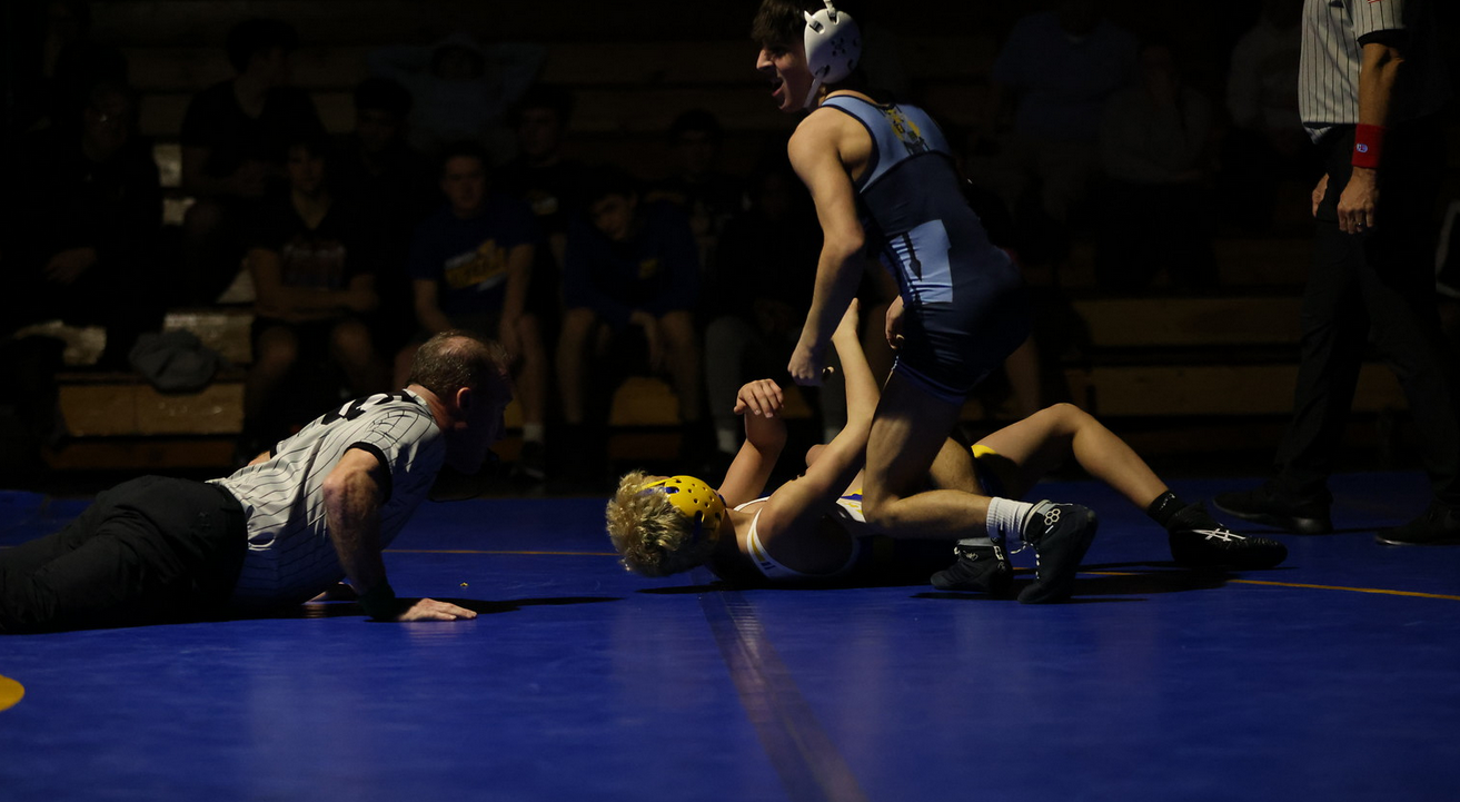 Rizzuto also pinned junior Brett Salitsky for the second time, which was crucial for the Pack. Muttart added his second three-point victory over talented freshman Charlie Bacinsky. Fahmi also saved the team bonus points versus one of Roxbury’s best Daniel Visha, who prevailed 5-3.