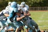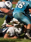 On the next play, Cormerford threw to the left side ,picking up 21 yards and moving the Vikings into Wolfpack territory. The next three plays only yielded eight yards for Par Hills, and it was faced with a make-it-or-break-it 4th and 2 at the West Morris 27 yard line. Cormerford took the snap, ran left and was met by Wolfpack linebackers Shane Thompson and Cap Huizenga in addition to linemen Nick Hamilton and Tony Castellani after a minimal gain.